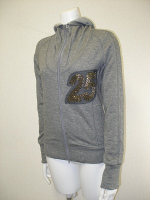 コットンウールの裏毛タイプ 胸のワンポイントはビーズ使い。パーカ