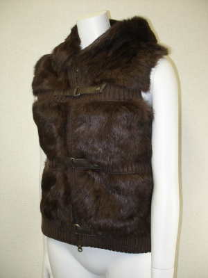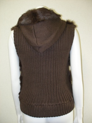 ラビットファーとリブニットのベスト。フードの内側と前身ごろには裏地付き。