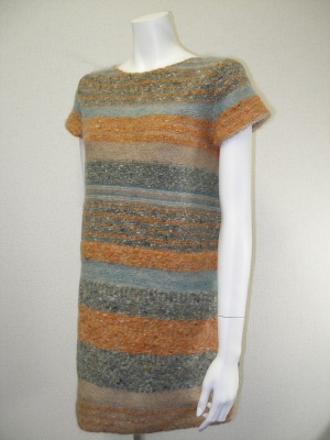 ウールモヘヤアンゴラ混。ミックスツイードの色がお洒落、着丈72cm