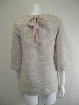 プリフィエのニットチュニック、後ろにリボン結び 圧縮ニットで脇の切り替えの所にポケットあり