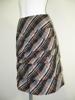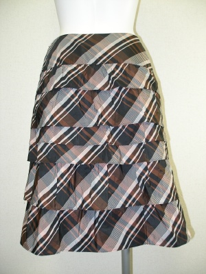 ポリエステル100%、ティアードのチェック柄スカート、丈51cm