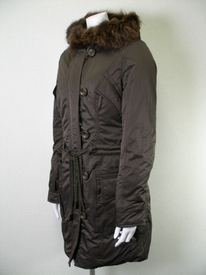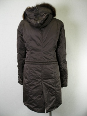 フードとジッパー内側のフォックスファーは取り外せます。中綿はダウン92%、フェザー8%。着丈85cm