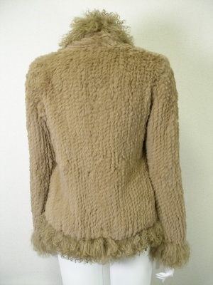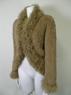 綿のネットにラビットファーを編みこんでいます。毛足の長い部分は羊毛皮。裏地なし、フロントはホック。