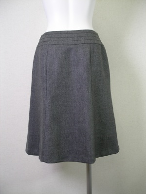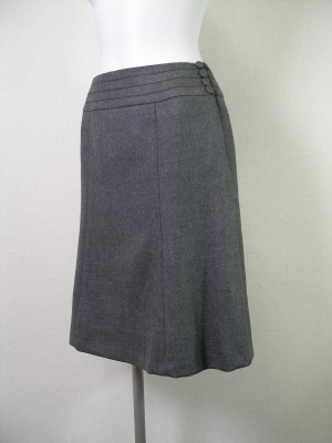 ウール100%、裏地付き。丈55cm。ウエストのサイドに飾りボタンが4個(クルミボタン)