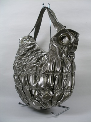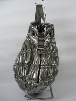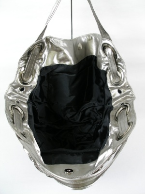 縦26cm、横38p、マチ約16p、持ち手50cm。内側のポケットは3つ。合成皮革。
