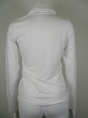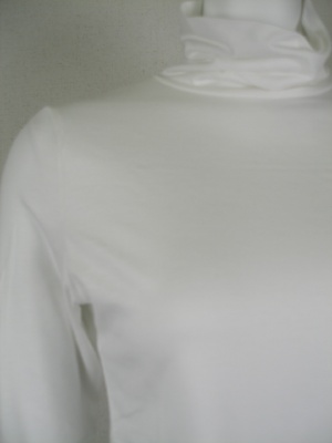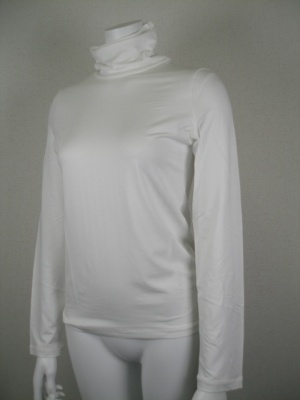 柔らかく滑らかで、ストレッチが効いています。インナーとして重宝するシンプルなタートルカットソーです。