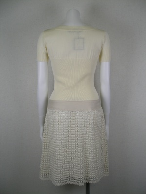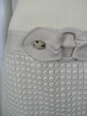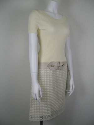 異素材使いのワンピース。スカート部分は綿100%、ベルトは綿50%麻50%、裏地はポリエステル。