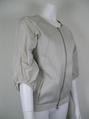 ギャザーを寄せたボリューミイな袖がインパクト大なジップアップカットソー。エレガントスポーティなスタイルと相性抜群です。