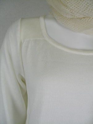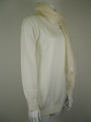 ストール付き(麻100%、アクセントにスパンコール付き) 長めのニットで裾がすぼまってる