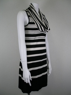 ボーダーが裾にいくほど色が反転して行きます。オフタートルの首周りがドレープになってるので一枚下にキャミを着たほうがいいです