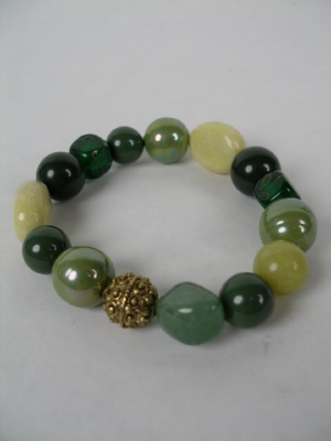 ガラスパール、レモンジャスパー、サーペンティンを使ったブレスレット。ゴム入りで付け外し簡単。