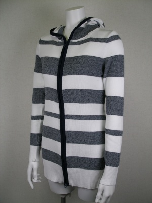 シャリッとした肌触りのニットパーカー。おしりがスッポリ隠れる丈です。