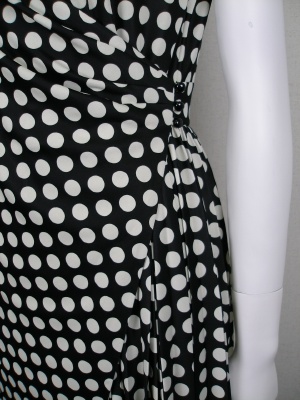 スタイルが良く見えるカシュクールワンピース。トロンとした落ち感のある素材。深いVネックなので、キャミソールなどのインナーが必要です。ペチコート付き。