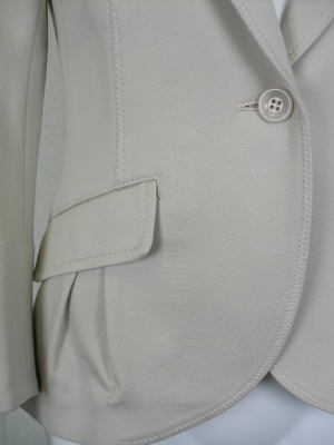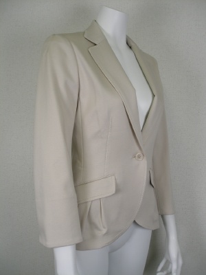 ストレッチの効いた細身のジャケット。裏地は無く、薄い肩パッドが入っています。