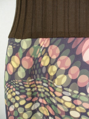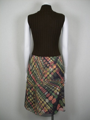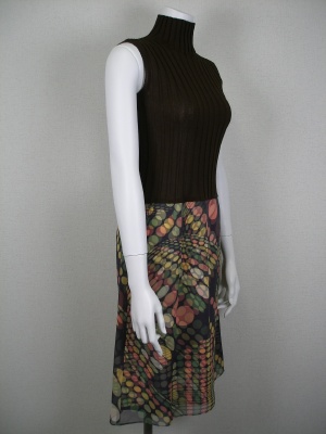 スカートはポリエステル100%で、透けないドット柄の生地に上に透けるシフォン生地を重ねてあります。
