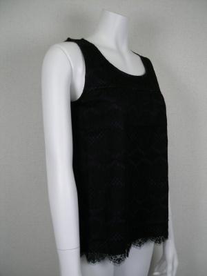 前身ごろ全体にレースを重ねてあります。レース:ナイロン60%・綿32%・麻8%(レースは黒)