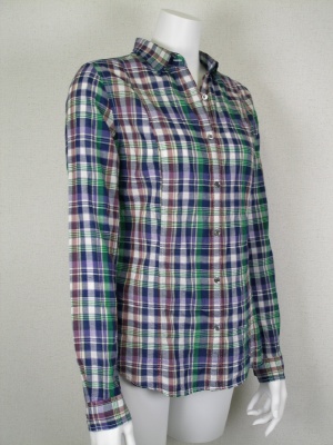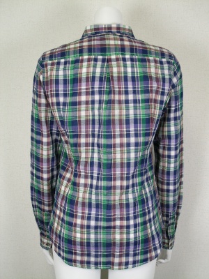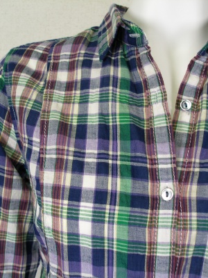 マドラスチェックの前開きシャツ。洗いざらしのナチュラルな風合いです。