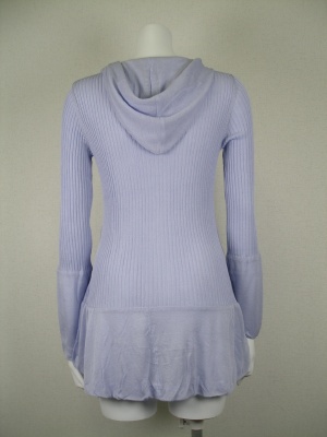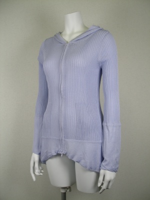 とろみのある薄手素材のニットカーディガン。フレアーの裾は後ろ下がりのデザインになっています。腰部分に2つポケットがあります。