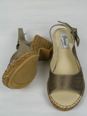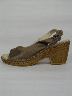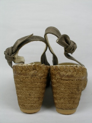 サイドからのヒールのラインが足をきれいに見せてくれるエスパドリーユです。光沢感ひかえめの上品なゴールドです。
