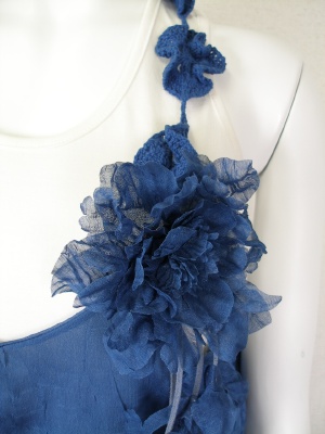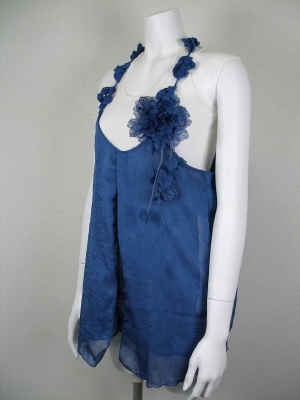 タンクトップとブラウスの2点セット。タンクトップはポリエステル60%、レーヨン35%、ポリウレタン5%のストレッチ素材。コサージュは外せます。(安全ピンとクリップが付いていて、使いまわしできます)