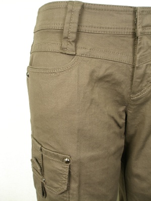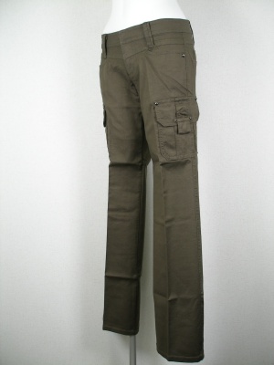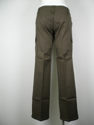 綿ストレッチのきれい目カーゴパンツ。裾に向かって少し広がりますが、ストレートに近いラインです。
