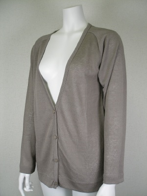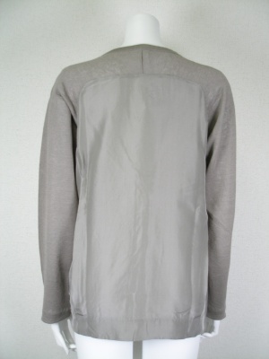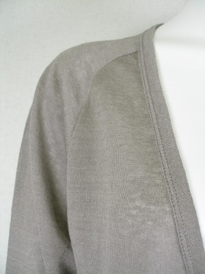 後ろ身頃の別布はシルク100%。シャリッとした素材が涼しげな、ゆったり目カーディガン。