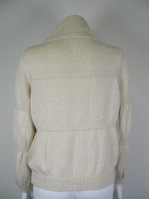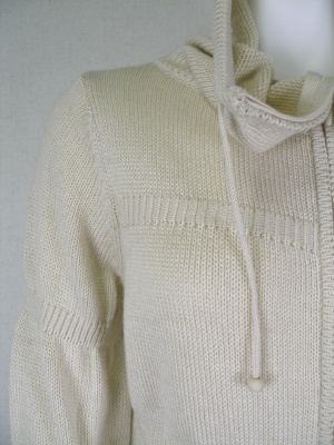 衿のヒモでクシュクシュ具合を調節できます。柔らかな肌触りのジップアップニット。