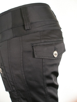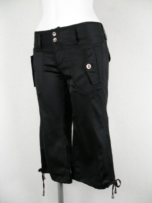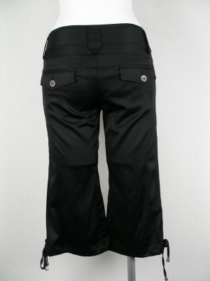 薄手のストレッチ素材でやや光沢があります。膝下くらいの丈で、裾のヒモを絞った着こなしがオススメです。
