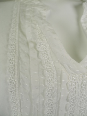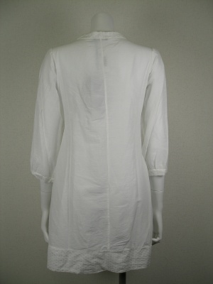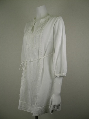 柔らかい綿シルクのシャツブラウス。ウェストの細いリボンは後ろで軽く結んでもOK。ゆったりシルエットです