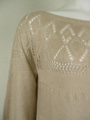 ソフトで軽いホールガーメントのニット。(ホールガーメント:一本の糸から一着まるごと編む。縫い目が無いのが特徴。)裏地なし。