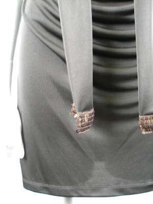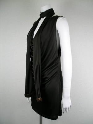 ドレープたっぷりで大人っぽいストール付きワンピース。両脇は大胆に開いていますので、インナーのキャミソールなどをチラ見せして。デニムやレギンスとのレイヤードもオススメ。裏地なし。