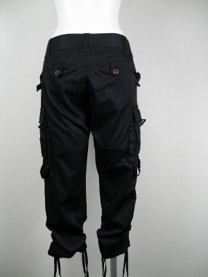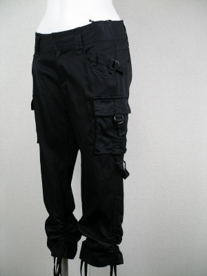 ツルッとした素材が大人っぽい細身カーゴパンツ。膝下でクシュクシュさせるタイプ。