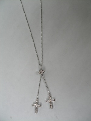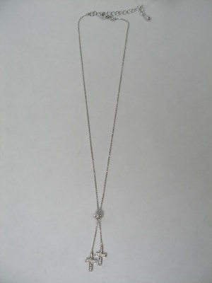 スワロフスキーがキラキラ綺麗なクロスのネックレス。上のモチーフ(2つのクロスをまとめている部分)は上下に動かせますので、お洋服に合わせたバランスにできます。
