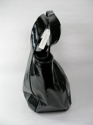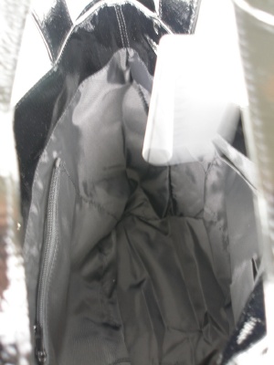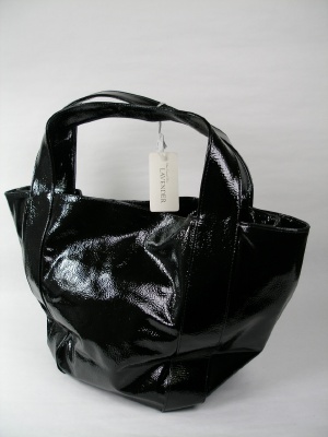 合皮のトートバッグ。マグネットで閉じるようになります。肩からかけても大ぶりなので存在感があります