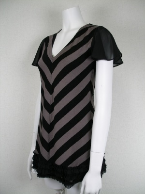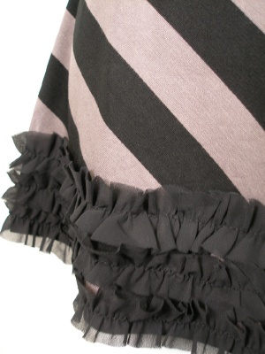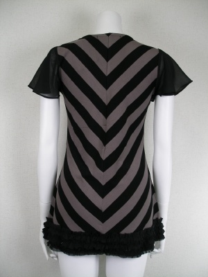 お袖と裾のフリルはポリエステルシフォン。身頃はとてもストレッチが効いています。モカ×黒の配色。