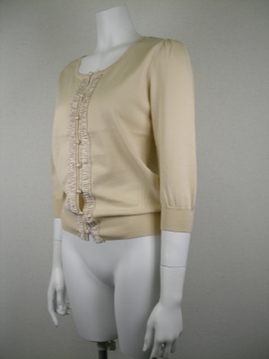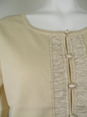フロントのサテン部分はコットン50%・シルク50%。アンサンブルになる半袖ニットもございます。