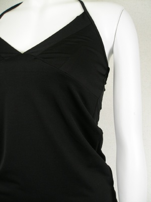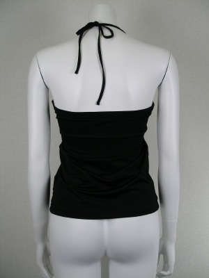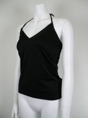 ツルッとしてストレッチの効いた、ホルターネックのキャミソール。後ろの上部分にゴムを入れてあるので、ぴったりフィットします。