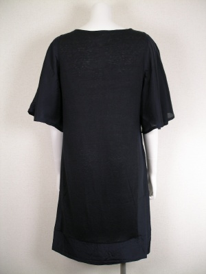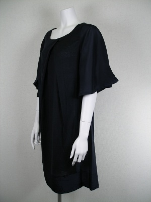 袖、両端、裾は別布(シルク100%)を使ったワンピース。お袖のフレアーやフロントのタックが、スタイル良くスッキリ見せてくれます。