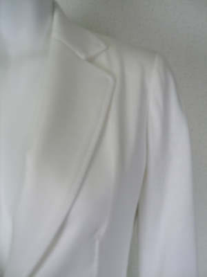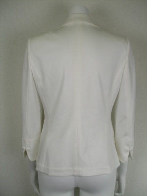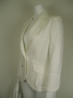 とても着やすい素材の裏無しジャケット。薄い肩パッド入り。細身の一つボタンで、着まわしやすいタイプです。