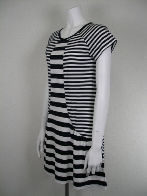 細太のボーダーの配色が着やせ効果ありのカットソーワンピです。