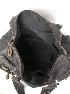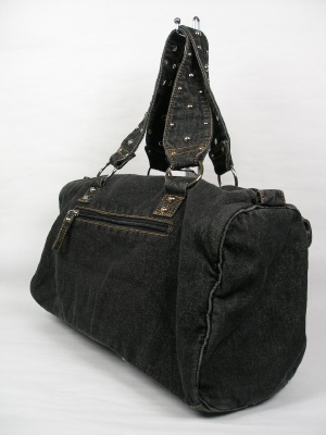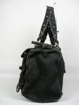 スタッズ使いがカッコかわいいブラックデニム地のボストン型バッグ。ポケットがたくさんついていて収納力も抜群です。