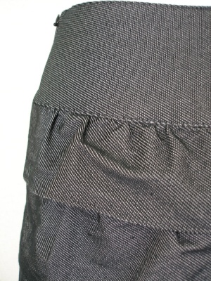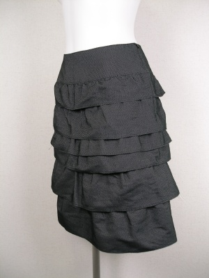 少しハリのある素材のティアードスカート。裏地はポリエステル。