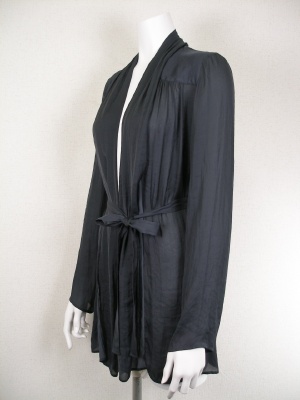 とても薄く、軽い素材のドレープカーディガン。ギャザーを寄せてあり、縦に流れるようなドレープが大人っぽい。
