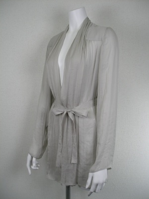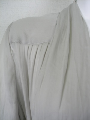 とても薄く、軽い素材のドレープカーディガン。ギャザーを寄せてあり、縦に流れるようなドレープが大人っぽい。