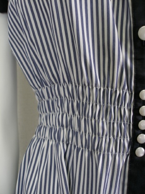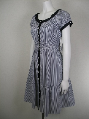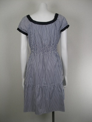 ネイビー×白のボーダー、パイピングは濃紺。ハイウエストでシャーリング、裏地無し。