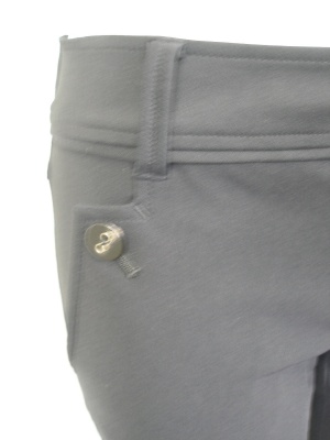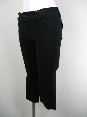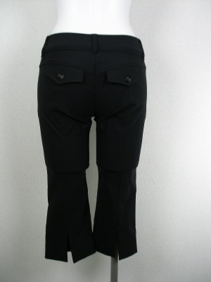 とてもストレッチの効いたクロップドパンツ。後ろの切り替えやスリットが、足を細く見せます。
