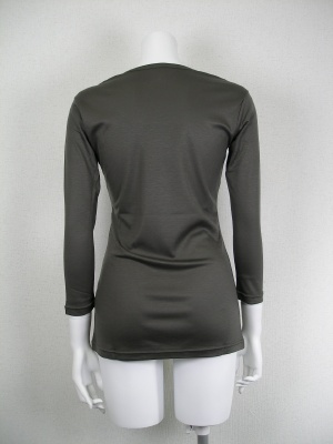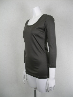 滑らかな肌触りで、インナーとして着まわしやすいカットソー。レクセル100%なので、綿のカットソーよりキレイ目な印象です。