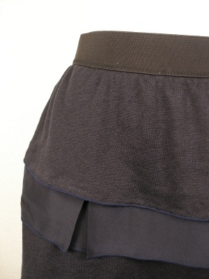 ジャージー部分はシルクと麻、サテン部分はシルク100%、裏地はキュプラ。ウエストは4p幅のゴム。