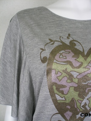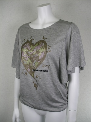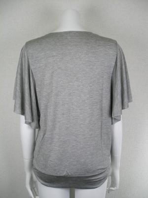 トロンとした素材でフレアースリーブのカットソー。脇はタンクトップのように詰まっているので、1枚でもお召しいただけます。