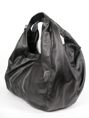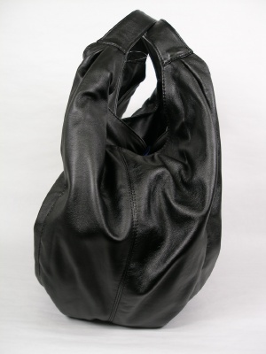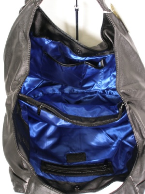 ツヤのないマットな黒のバッグ。中は鮮やかなブルー。真ん中に仕切りがあり、使いやすいデザインです。